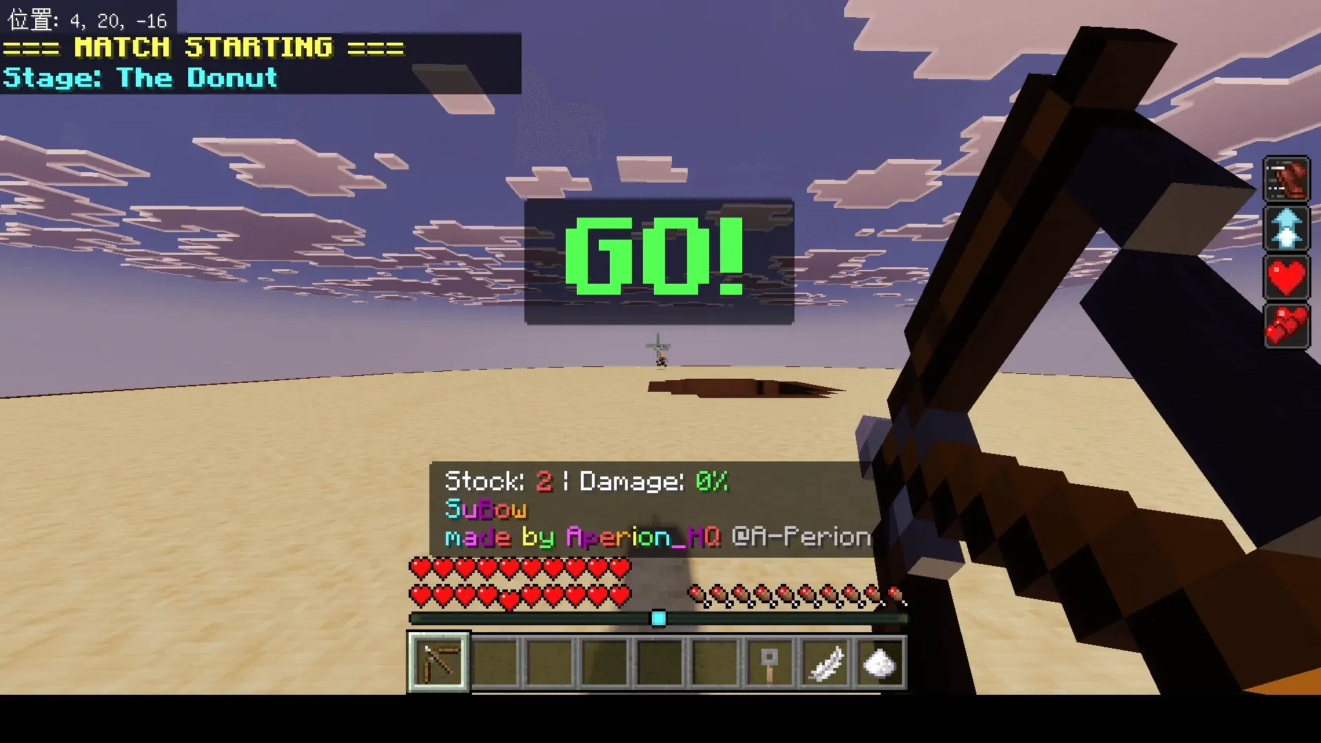 SuBow: Super Smash PvP Map is for players who want PvP to feel like a party brawl instead of the usual “who has better armor and more gapples.” The core twist is the Smash-style damage system: you rack up a higher damage percentage as you get hit, and the higher it gets, the easier it is for someone to launch you off the map. So the whole match becomes about movement, positioning, and timing shots, not just trading hits until someone’s health bar runs out.