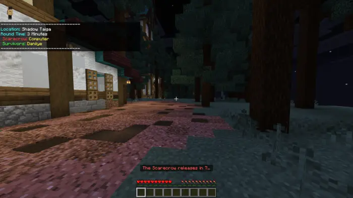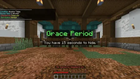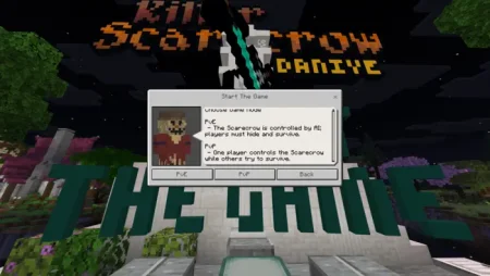 Killer Scarecrow Map is built like a scary party game you can run with friends when you want tension instead of chill mining. The setup is simple: you either play as a survivor trying to outlast the clock, or you become the Scarecrow and hunt everyone down before time runs out. The fields are dark, visibility feels sketchy, and the moment someone gets caught, the map hits them with a jump scare—so even when you think you’re safe, you’re still playing nervous.