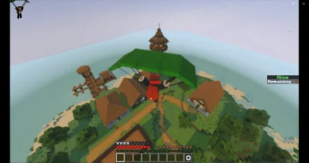You start in a Counting Zone on a mini-island and wait 20 seconds before heading to the main Battle Royale island. That lobby area is interactive, and you can tweak settings like map time, weather, and difficulty. To jump into the mode, you hit the statue and a menu pops up, which makes it feel like a real PvP hub instead of a basic spawn point. Once the match kicks off, everyone jumps from a plane to whatever area they want and scrambles for loot—guns, first aid kits, grenades, and anything else you can grab before running into other players.