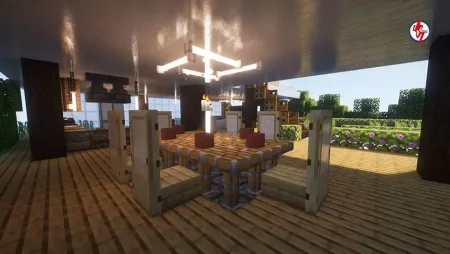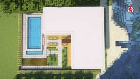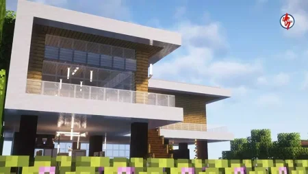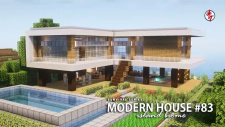 Survival Modern House #83 Map places you on a tidy island where a sleek, glass-and-wood modern house is already waiting. Achievements are on, so every step counts toward real progression. Walk in and you’ll find a practical layout that makes early game painless: crafting and storage up front, sleeping tucked safely away, and just enough starting supplies to get moving without feeling handed everything. The spawn is set, so if night goes sideways, you’re back inside fast.