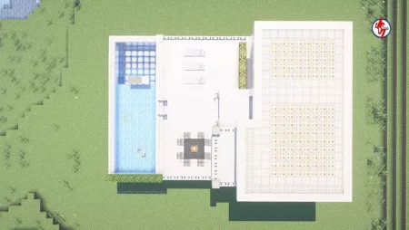 Morning light slides across concrete slabs, the river moves slow, and your first day actually starts inside a finished modern space. Survival Modern House #80 Map gives you a clean layout that respects the loop: workstation up front, storage within a few steps, bed tucked safe so a bad night doesn’t erase momentum. The terrace pool isn’t just for looks; it’s a calm reset spot after rooftop work and a clear landmark when you sprint home from the treeline.
