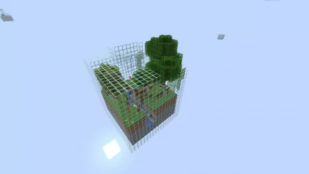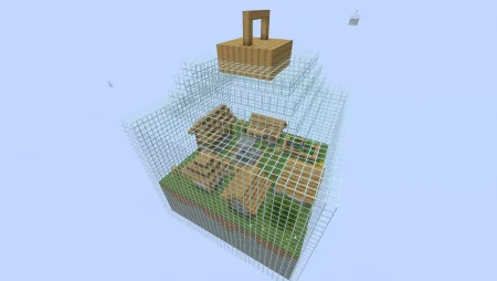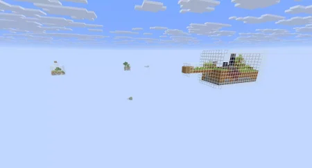 Shattered Skies Map asks you to think vertical first. Forests, deserts, and ice fields hang like specimens in glass; villages cling to rock spines; a sliver of stronghold peeks from a broken chunk. You’re playing Skyblock-style survival, but nothing feels cut down—it’s the full 1.21.10 sandbox, reassembled in the sky. Early game is about nerve and planning: bridge cleanly, place water before a risky drop, and harvest every sapling like it’s gold. Food starts scarce until you anchor farms to a safe platform and stitch a path to your first “bottled” biome.