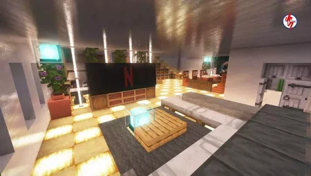 Survival Modern House #33 Map throws you straight into a comfy modern base that’s ready for real survival, not just screenshots. This house sits in a calm plains biome, so you get flat land for farms, animal pens, redstone builds, or whatever projects you like, without fighting terrain the whole time. The build itself is clean and modern, with a finished yard and a proper interior, so you can drop in, look around for a minute, and start playing instead of spending your first hour placing basic walls and a roof.