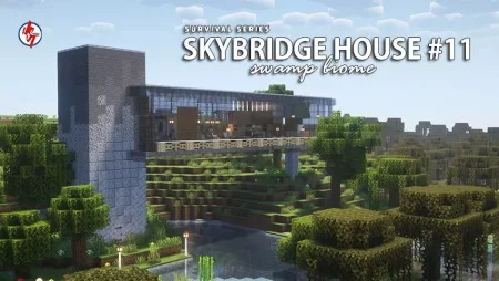 Survival Skybridge House #11 Map starts you right in the middle of a swamp survival run, but with a seriously upgraded starter base. Instead of spawning in a random mud patch, you wake up in a themed skybridge house sitting above the water, with a full interior and exterior already finished. Achievements are on from the start, so everything you do in this world still counts toward your usual Bedrock survival progress.