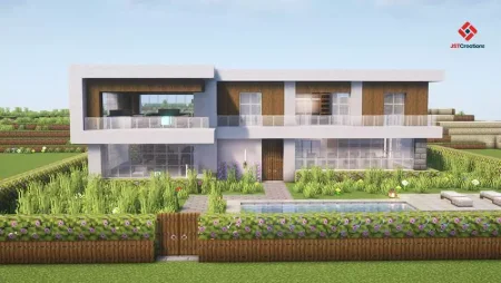 Survival Modern House #100 Map is a milestone build, and it plays like a ready-made starter base you can actually live in from minute one. You’re placed into an Island Survival biome with a modern-themed house that’s already finished inside and out, so you can skip the early-game scramble and jump straight into exploring, gathering, and expanding your island setup.