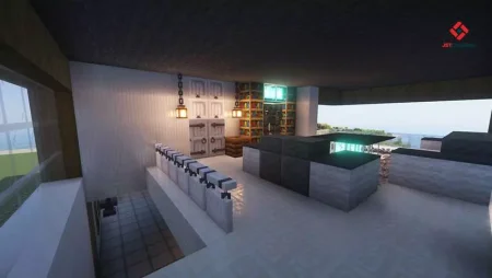 One of the best details is the placement near an existing village. That adds instant atmosphere around your base and makes the world feel active, and it also gives you natural long-term goals like trading, protecting villagers, or turning the area into a bigger island town. The spawn point is set inside the house too, which is super convenient for deaths and reloads because you always come back to your main base instead of spawning outside on the island. Survival Modern House #100 Map is a clean, celebratory survival home that’s ready to play the second you load in.