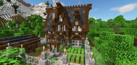 Cozy Survival Farmstead Map drops you into a walled medieval homestead that actually runs: furnished house, working pens, gardens, a real well, and just enough starter gear to push day one without panic.