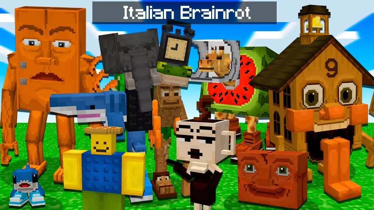 ITALIAN BRAINROTS Mod throws a pack of cursed Italian brainrot characters into your Minecraft Bedrock world, with flying pizzas, screaming slugs, wild bosses, and meme chaos exploding out of Lucky Blocks.
