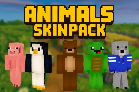 Animals Skin Pack swaps your boring player model for full-on creature vibes so you actually look like the mob you’re acting like. You can jump into worlds as a house pet, a wild hunter, or something a little more exotic and instantly change the mood of any server. It’s not just “ears and a hoodie” either — the skins are designed so they read clearly as animals from a distance in lobbies, villages, and PvP arenas.