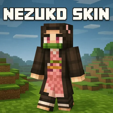 Nezuko Skin is for the players who grind all day and then chill with anime at night. It drops you straight into your world looking like Nezuko from Demon Slayer, with the long dark hair, pink-and-brown outfit, and that instantly recognizable bamboo muzzle. It reads clearly even from a distance, so in lobbies, realms, or big survival hubs, people know right away you’re rocking an anime classic, not a random generic skin.