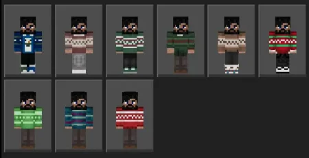 Christmas Sweaters Skin Pack is the easiest way to flip your world into holiday mode without changing anything else about gameplay. You get nine different sweater skins, and the variety is the fun part—some feel like classic Fair Isle winter fits, others lean into silly reindeer energy, and some look like you’re literally wearing pixelated Christmas lights. It’s perfect for that season when you’re building snow villages, decorating spawn, or making a winter market with your friends and you want everyone to look like they actually showed up for the event.