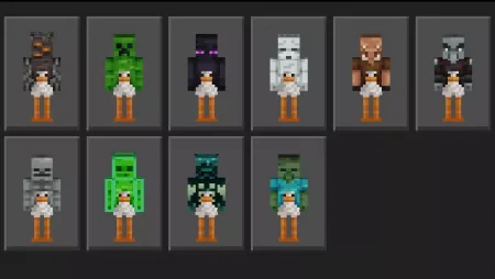 In survival, Chicken Jockey - Skin Pack makes normal stuff like mining trips and nighttime fights feel less sweaty and more like a meme run with friends. It’s also great for roleplay servers if your group likes goofy lore—like you’re part of a cursed circus, a chicken cult, or a tiny-mount rider gang. If you want a skin pack that doesn’t take itself seriously and guarantees laughs, Chicken Jockey - Skin Pack delivers exactly that.